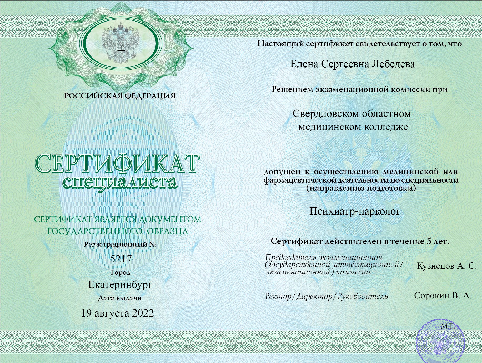 Елена Сергеевна Лебедева врач нарколог клиники доктора Стукаловой в Баймаке
